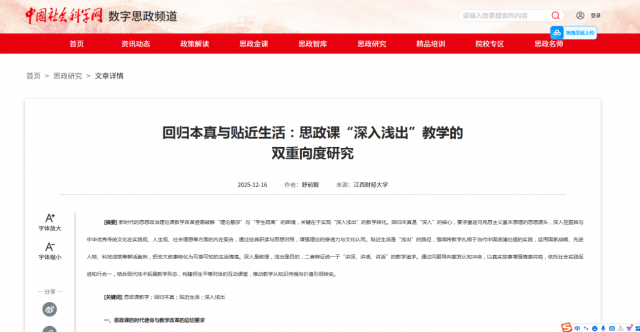 舒前毅在《中国社会科学网》发表高质量教研论文