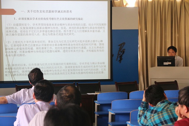 陈院长向全院教师介绍了红色文化资源的研究现状,认为要理解红色文化资源的科学涵义,必须重视从学术史的角度考察红色文化资源的研究缘起,牢牢把握红色文化资源的“一体两翼”,充分关注红色文化资源的表现形式。