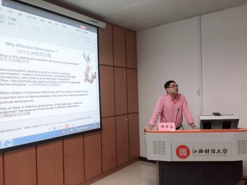 4月25日下午,美国俄亥俄克利夫兰州立大学政治系终身正教授,亚洲学所主任谭青山教授应邀为马克思主义学院师生做了题为《中国治理中的理论与问题》的学术报告。本次报告由马克思主义学院副院长刘晓泉教授主持。马克思学院教师和硕博研究生参加了学术报告。