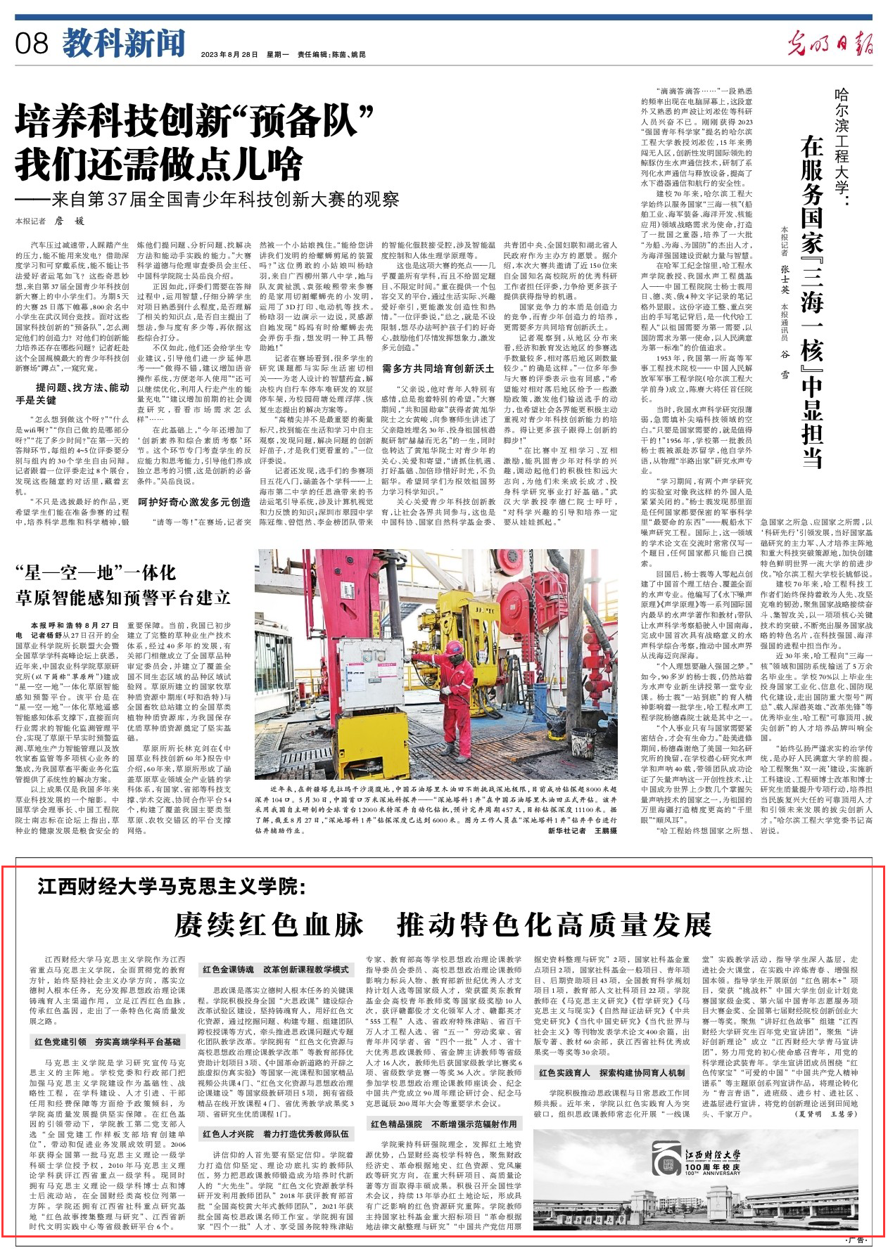 8月28日,《光明日报》以“延续红色血脉推动特色化高质量发展”为题,对我校马克思主义学院的红色发展新思路进行了专题报道。