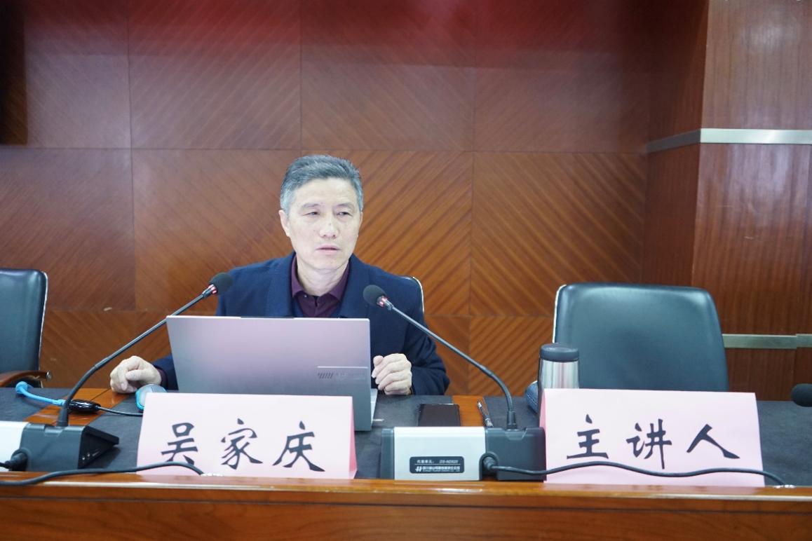 12月28日上午,国家级人才、广西大学君武学者特聘教授吴家庆以“习近平新时代中国特色社会主义思想科学体系解读”为题,为全省第十五期高校思政课教师培训班学员授课,马克思主义学院副院长舒前毅主持本次授课。