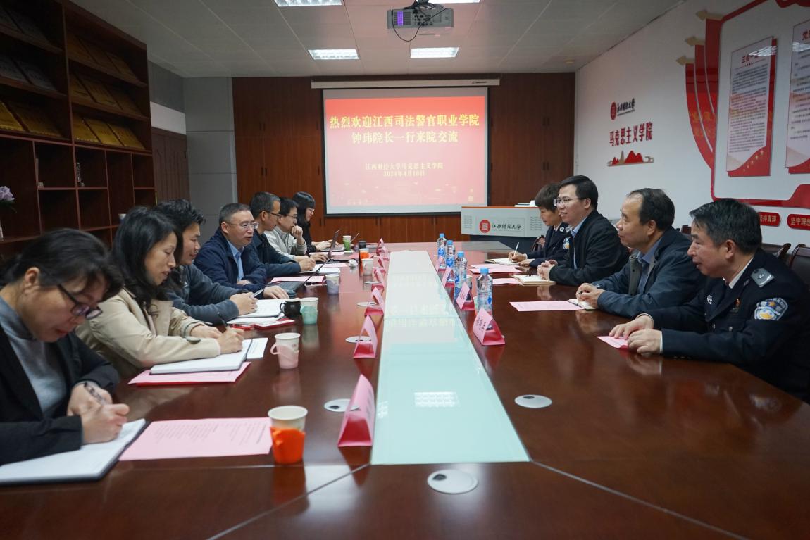 4月10日上午,江西司法警官职业学院院长钟玮、副院长赵维科、纪委书记涂红梅和思政部主任徐艳兵等一行来我院交流,学院院长刘晓泉出席,学院班子成员及教师代表参加座谈。