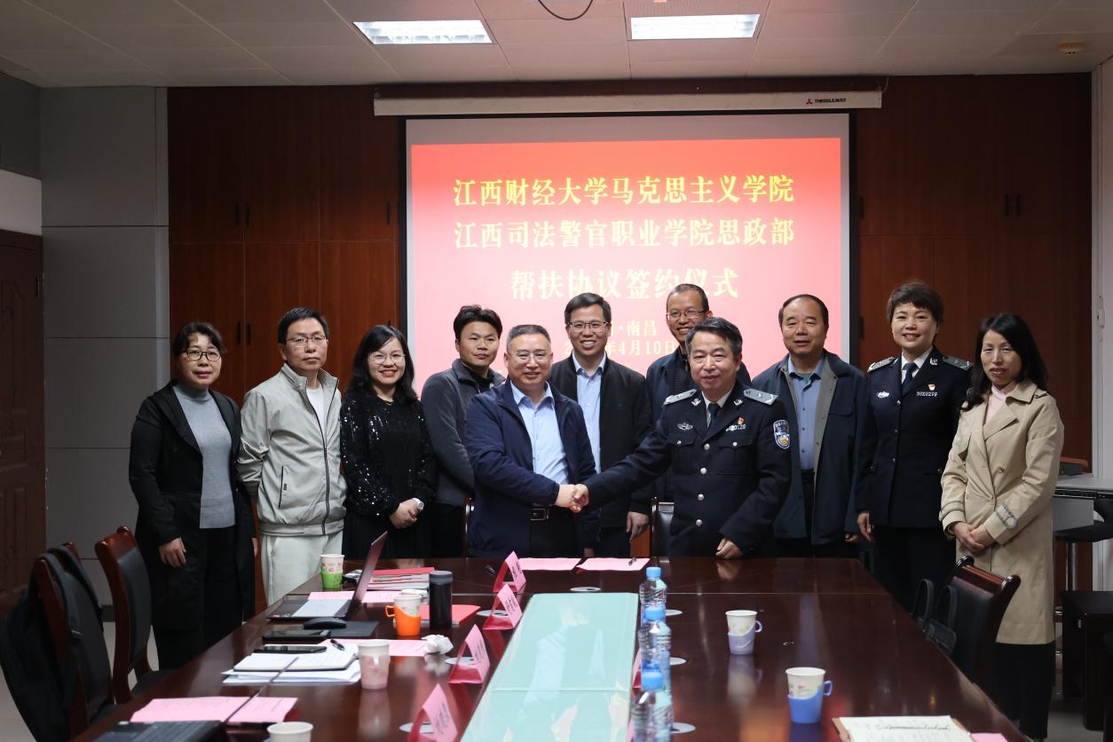 会上还进行了帮扶协议签约仪式。此项合作协议的签署有利于增进我院与江西司法警官职业学院思政部的合作关系,推动双方在思政课教学、科研项目申报以及人才培养等方面开展深度合作。