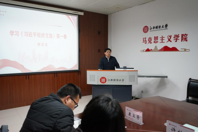 近日,马克思主义学院举行党委理论学习中心组2025年第3次学习(扩大)会,专题学习《习近平经济文选》第一卷,并聚焦学院重点工作进行学习研讨。会议邀请了原江西省教育厅厅长、博士生导师郭杰忠教授作辅导报告。会议由马克思主义学院院长刘晓泉主持,院班子成员、各系部支部书记、教研室主任、马院教师代表、数字经济学院教师代表参加会议。