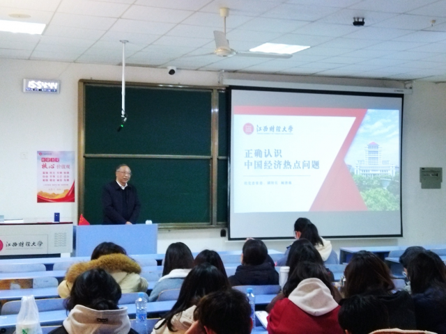 12月3日下午,校党委常委、副校长阙善栋教授走进麦庐园校区二教2202教室,为设计与艺术学院数字媒体艺术专业111名大一本科生讲授《形势与政策》课,主题为“正确认识中国经济热点问题”。