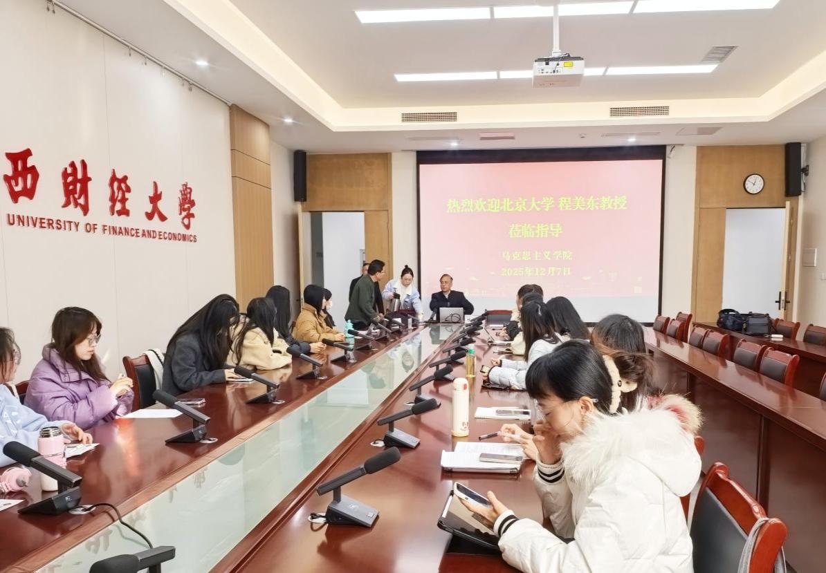 12月7日上午,北京大学程美东教授应学院邀请,在江西财经大学北区财数大楼110会议室就“如何引导青年学生读《毛泽东选集》”开展专题讲座。学院副院长舒前毅出席,学院部分师生代表参加,讲座由舒前毅主持。