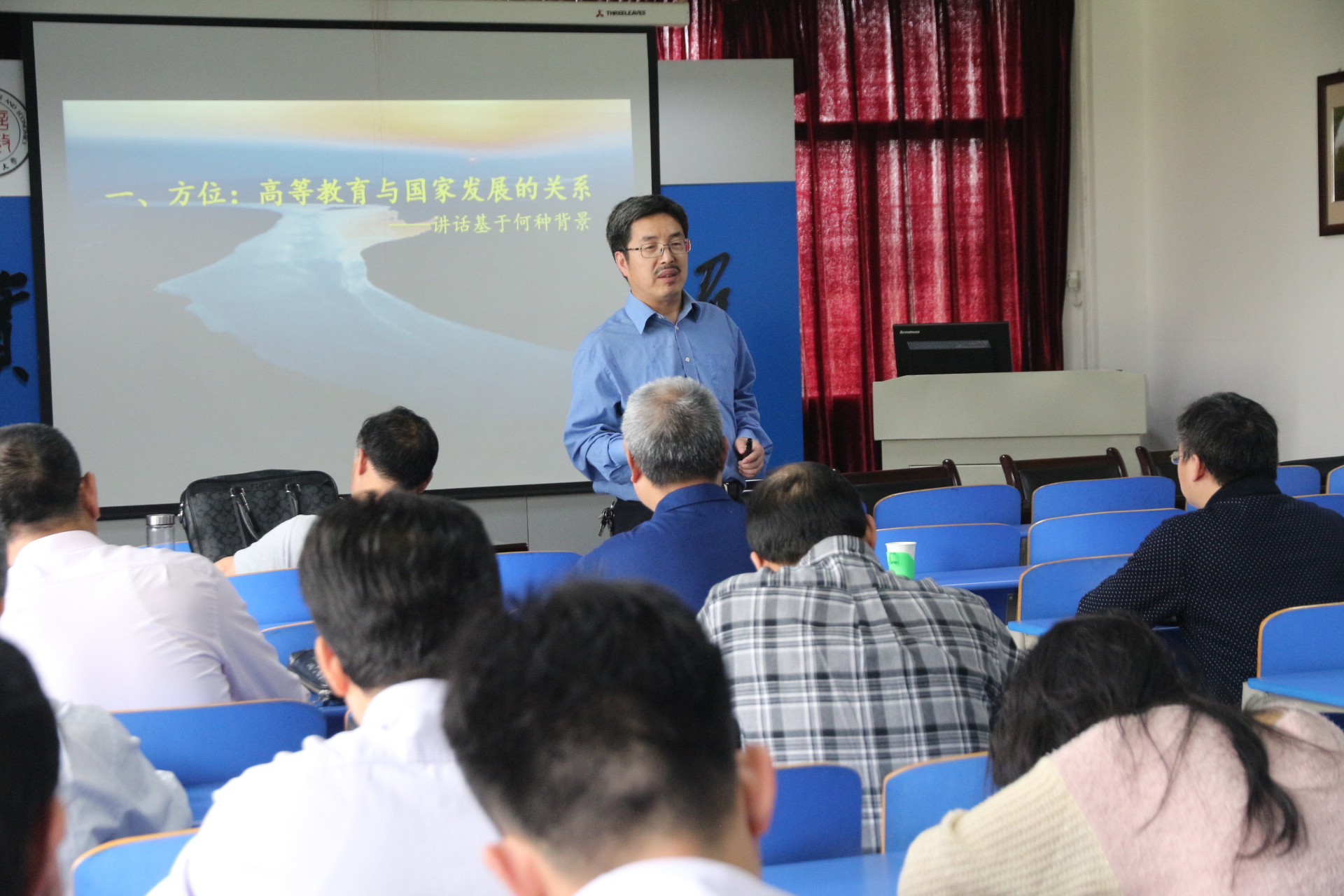5月4日下午,蒋金法副校长应邀来我院为全体教师上了题为“凝心聚力,同向同行,把思想政治工作落细落实”的党课,深入解读了习近平总书记在全国高校思想政治工作会议上的讲话精神。会议由江水发书记主持,全体老师参加了会议。