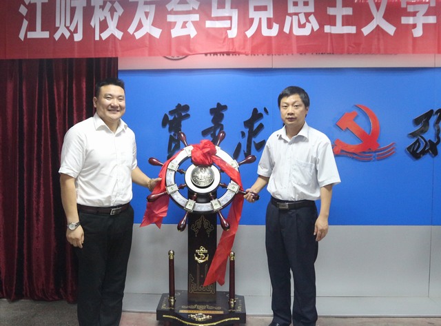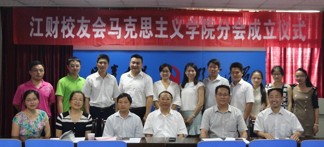 2015年6月29日,江财校友会马克思主义学院分会成立仪式在翼轸楼举行,仪式由马克思主义学院党总支副书记唐海燕副主持。校长助理、校友联络中心主任阙善栋,副主任潘华到场祝贺,潘主任宣读了学校关于成立马克思主义学院校友分会的批复,阙校助发表了热情洋溢的致辞。马克思主义学院校友分会会长张友文作了真情发言,并代表2015届毕业生隆重向学院捐赠纪念品――领航舵,院长陈始发代表学院接受校友捐赠。部分在昌校友参加了仪式,仪式简短、热烈。